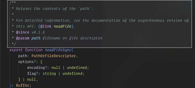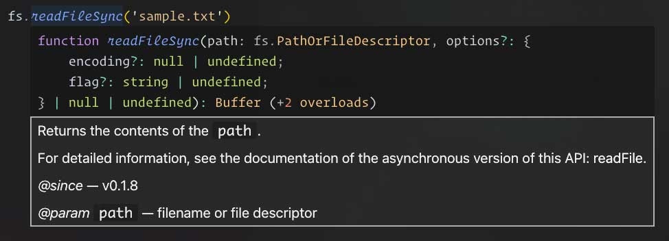 Description when you hover over `fs.readFileSync()`