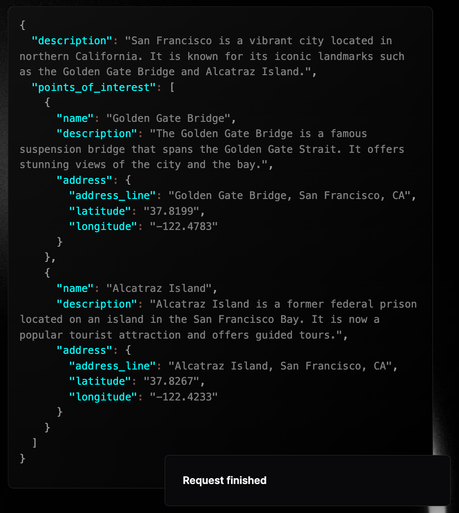This was just an example, in reality, getting the latitude & longitude from a LLM is probably not the best idea ever.