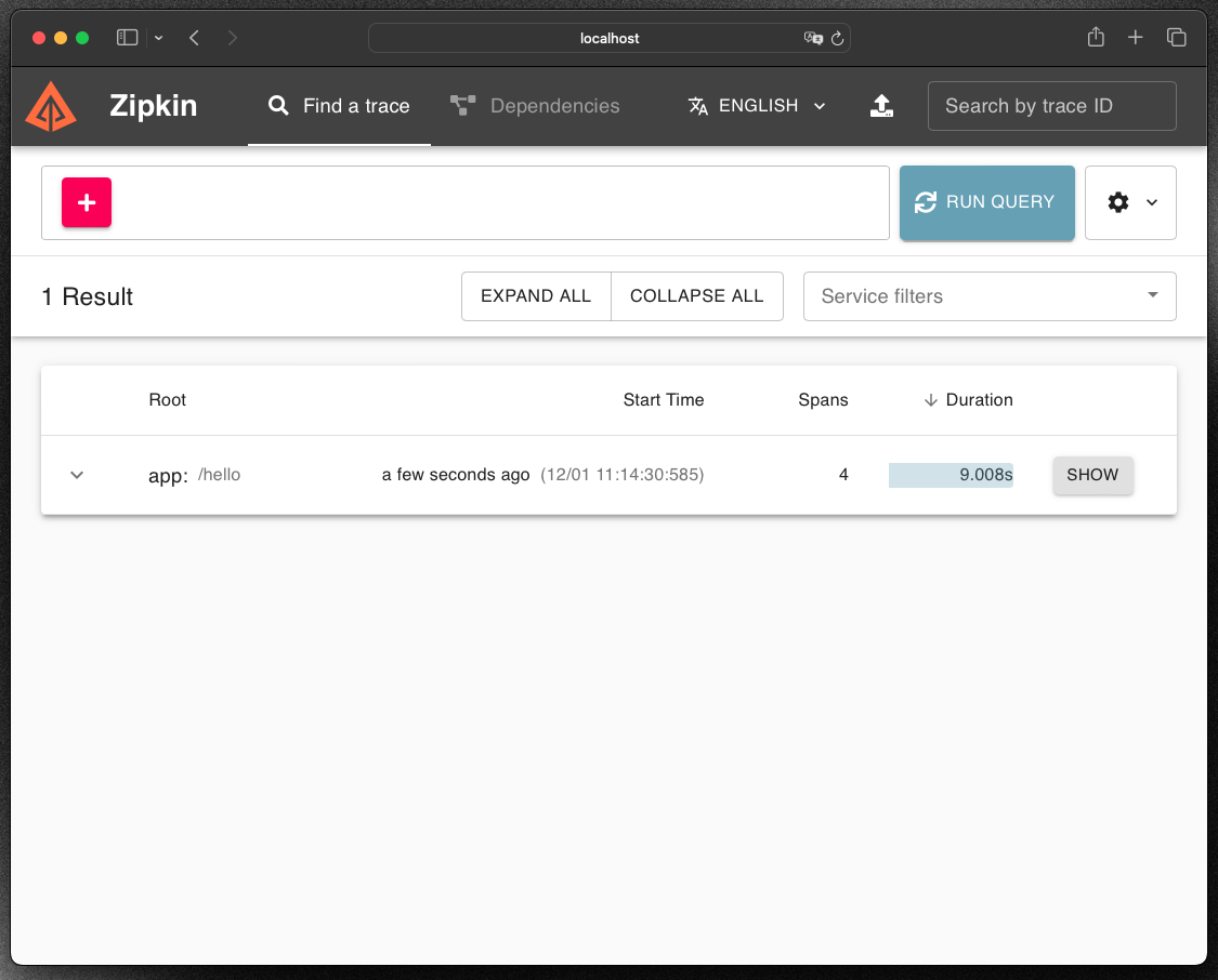 hello entrypoint using the RΞASON Playground and hit the RUN QUERY button in Zipkin, it will appear there: